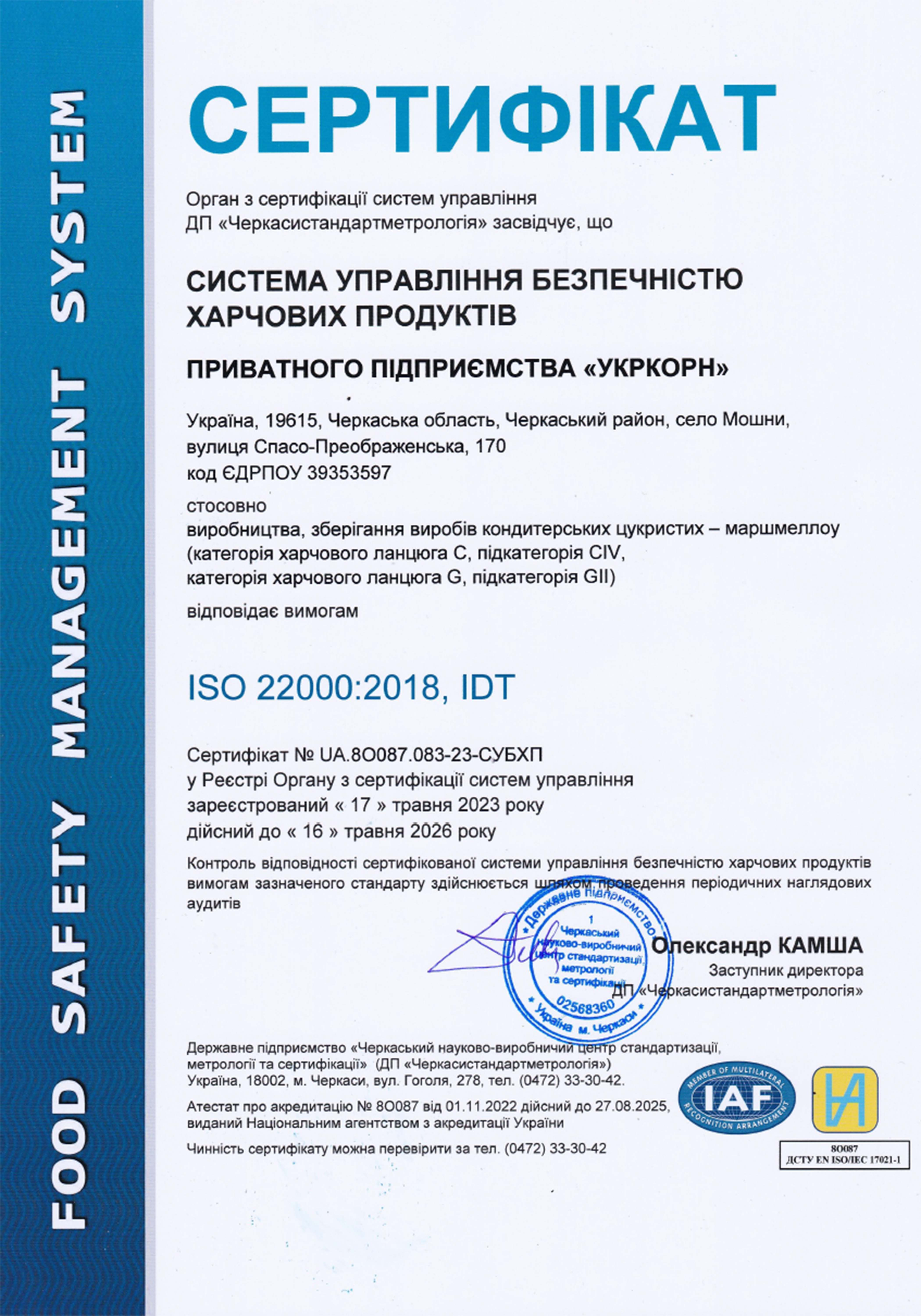 PE "Ukrkorn" is a Ukrainian manufacturing enterprise specializing in the production of marshmallows under the trademark "Tucha".