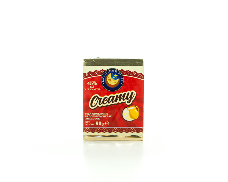 المكونات: أجبان اللبن الرائب، المنتجات المصنوعة من الحليب الخام (الماء المبستر، مسحوق الحليب منزوع الدسم، بدائل دسم الحليب، بروتين الحليب المركز، ملح الطعام المغلي، بإستخدام: تخمير مستنبتات نقية من بكتيريا حمض اللاكتيك ميسوفيليك، إنزيم تخثر الحليب من أصل ميكروبي، الإضافات الغذائية: مثبت - كلوريد الكالسيوم، مادة حافظة - نترات البوتاسيوم، صبغة "أناتو")، ماء - 11.3٪ ، بديل دسم الحليب (دهون نباتية (عباد الشمس و / أو زيت فول الصويا المهدرج جزئياً، زيت النخيل / زيت النخيل) مكرر، منزوع الرائحة زيت دوار الشمس وزيت النخيل المكرر، مستحلبات E471 ، E475 ، ليسيثين E322، نكهة "كريم الزبدة"، مضادات الأكسدة E330 ، E321، صبغة بيتا كاروتين E160a))، مصل الحليب المجفف منزوع المعادن، كريم الحليب - 5٪، أجبان صلبة (حليب بقري مبستر، حليب خالي الدسم، ملح طعام مغلي، مزارع بكتيرية من بكتيريا ميسوفيليك، بكتيريا حمض اللاكتيك الأليفة للحرارة، إنزيم تخثر الحليب من أصل ميكروبي، إضافات غذائية: مثبت - كلوريد الكالسيوم، مادة حافظة - نترات البوتاسيوم، صبغة "أناتو")، ملح منصهر (فوسفات ثلاثي الصوديوم)، نظام تثبيت (صمغ الطعام، صمغ الزانثان، نشا الذرة) ، ملح طعام مغلي.