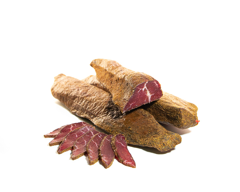 المكونات: لحم بقري ممتاز، ملح بحري، حلبة، فلفل أسود، بهارات، بابريكا حارة، بابريكا حلوة، ثوم، ورق الغار.