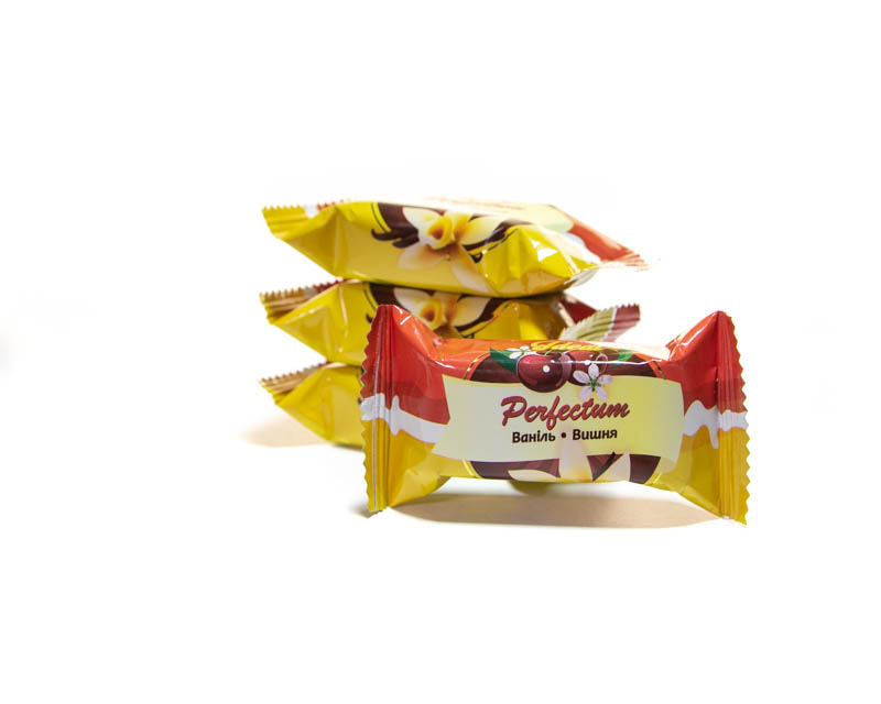 Combination of souffle with cherry and vanilla flavored jelly in chocolate glaze. Ingredients: sugar, glucose syrup, confectionary glaze, water, corn starch, humectant sodium lactate, gelling agent carrageenan, gelling agent agar, dry mixture based on animal and vegetable proteins, acidity regulator, "Cherry" and "Vanilla" flavoring, artificial coloring agent (Е102, Е110). MAY CONTAIN: GLUTEN.