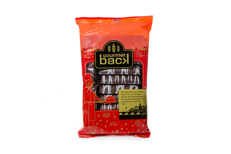 وهو مصنوع على شكل قضبان خبز الزنجبيل، ومغطى بطبقة حلويات داكنة ومزينة باللون الأبيض.