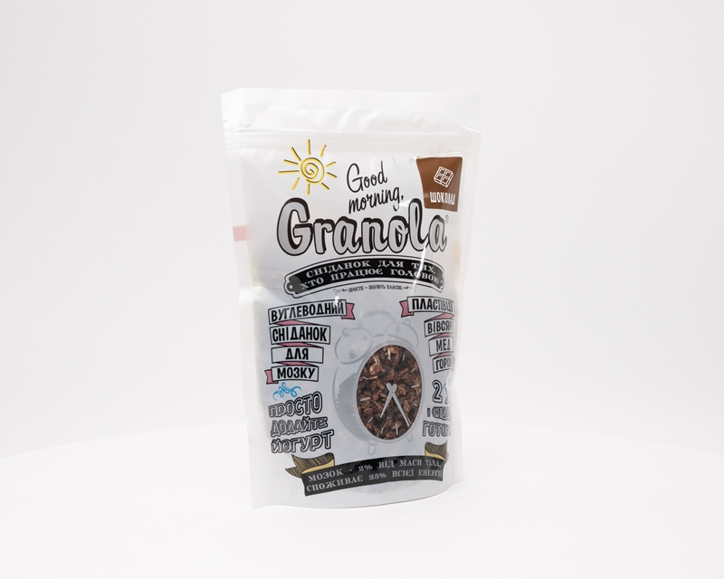 المكونات : رقائق الشوفان, شوكولا (22,0) ( مقدار من الكاكاو, زبدة الكاكاو, مستحلب الليسيثين) عسل, خليط من المكسرات بنسب متغيرة (لوز محمص وكاجو) بودرة الكاكاو.