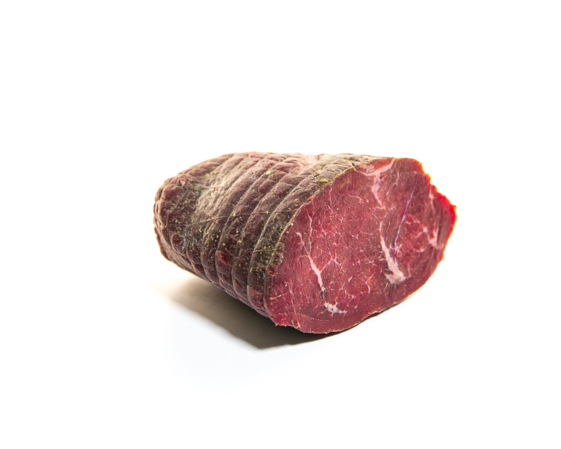 Brezaola ist eine Delikatesse aus rohem Rindfleisch, die auf italienischer Technologie basiert. Der hintere innere Hüftteil der Karkasse wird bei der Vorbereitung verwendet. Rindfleisch wird in Gewürzen mariniert und 4 bis 8 Wochen gereift. Er passt sehr gut zu Wein, wird als kalter Snack oder bei der Zubereitung von Bruschetta und Pizza verwendet. Zutaten: Premium Beef, Meersalz, Zucker, Rosmarin, Thymian, schwarzer Pfeffer und Wacholder, Zusatz E-250.