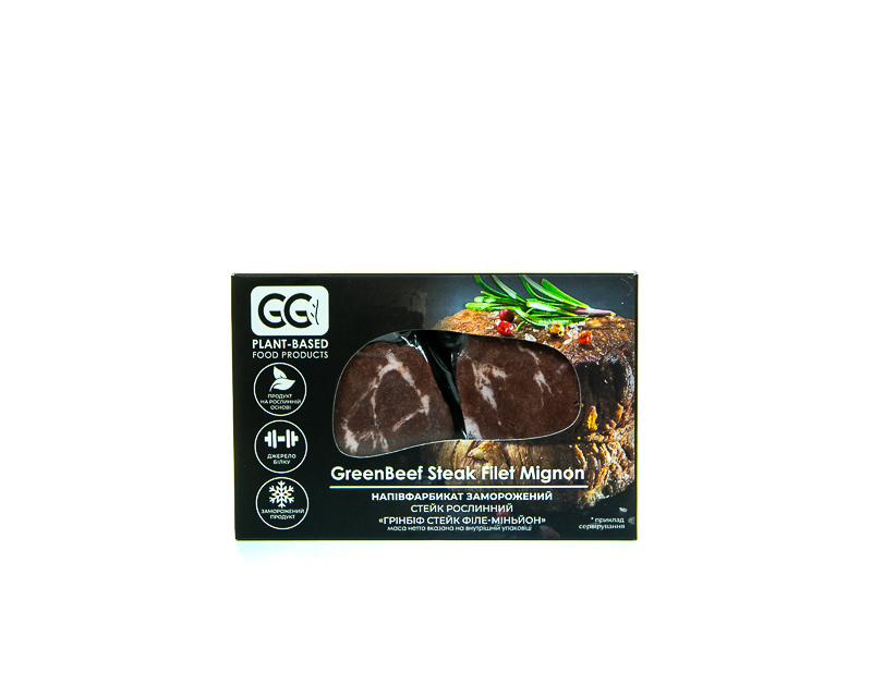 GreenBeef Steak Filet Mignon - Gemüsesteak Filet Mignon. Unglaublich saftiges und aromatisches Gemüsesteak. Es hat eine wunderbare Marmorierung, die für Premiumprodukte charakteristisch ist. Gemüsesteak enthält nur natürliche Farb- und Inhaltsstoffe, Ballaststoffe und vegane Aromen.