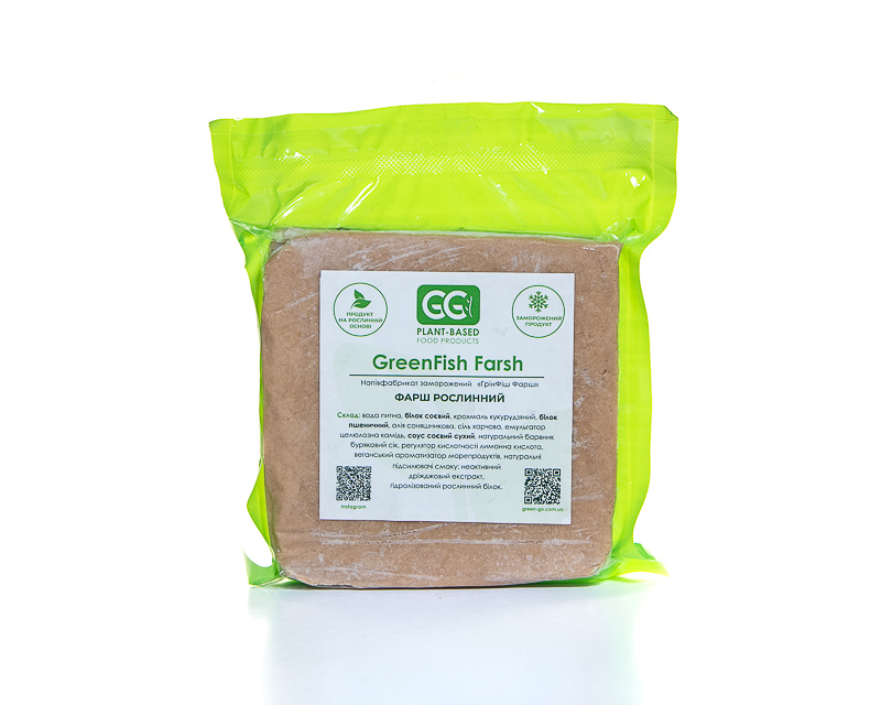 GreenFish Farsh - Gemüse-Hackfleisch - wird Sie mit seiner Zartheit und Textur überraschen. Es ist nicht nur eine Proteinquelle, sondern auch eine hervorragende Zutat für viele Gerichte. GreenFishFarsh ist ein 100 % pflanzliches Produkt.