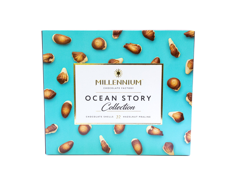 Süßigkeiten aus Marmor Schokolade mit zartem Nuss-Praline in Form von Meeresfiguren. Marmor Schokolade ist eine Kombination aus Milch und weißer Schokolade in einem einzigartigen Muster. Jede Süßigkeit hat ihr eigenes Muster.