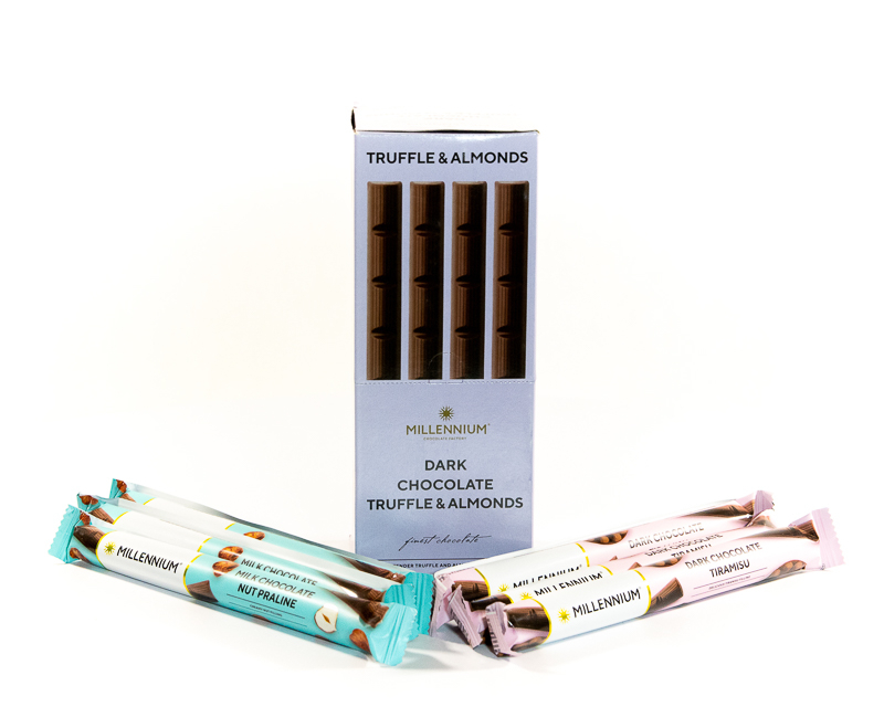 Schwarze Schokolade und zarte „Tiramisu“ Füllung im praktischen Riegelformat