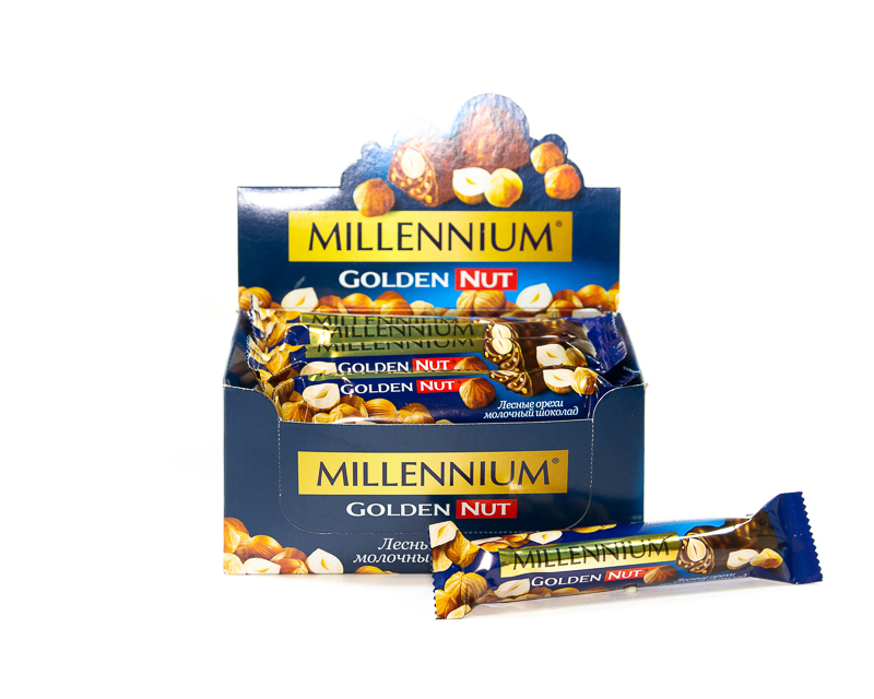 Milchschokolade, Pralinenfüllung und ganze Haselnüsseim praktischen Riegelformat.