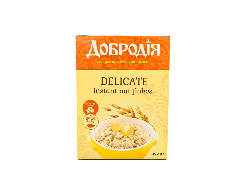 Klassische zerkleinerte Instant-Haferflocken mit einer schmelzenden cremigeren Textur und einem angenehmen Geschmack.
