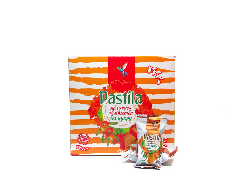 Zutaten: Apfel, Sanddorn, Zuckerersatz (Fruktose, Stevia), Eiweiß.