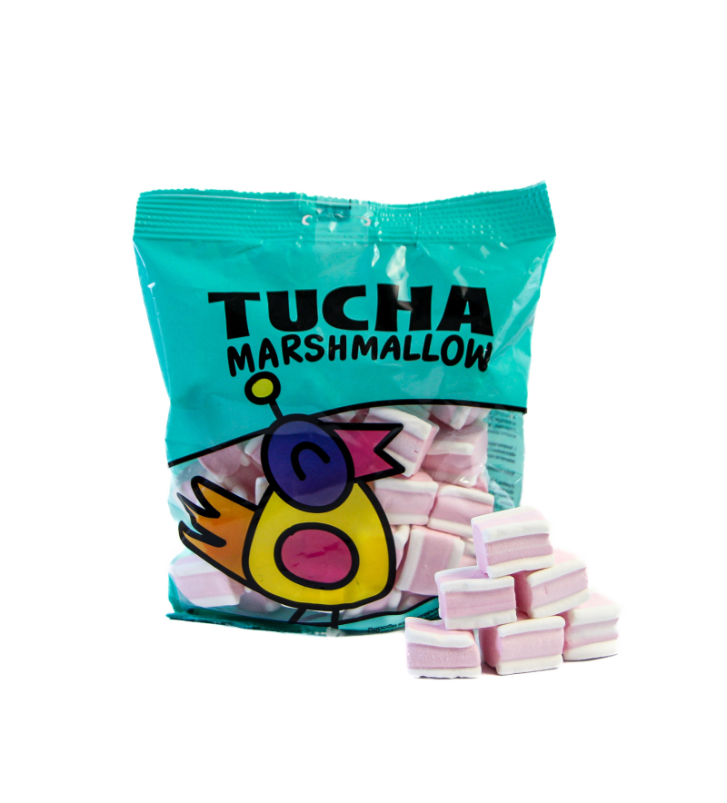 Zuckerhaltige Süßwaren: Marshmallow „Cheerful Springs“ mit Erdbeergeschmack, TM TUCHA – 175 g