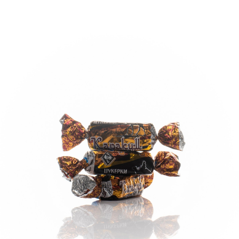 Glasierte Pralinenbonbons mit Waffelkrümel und leichtem Milchgeschmack.