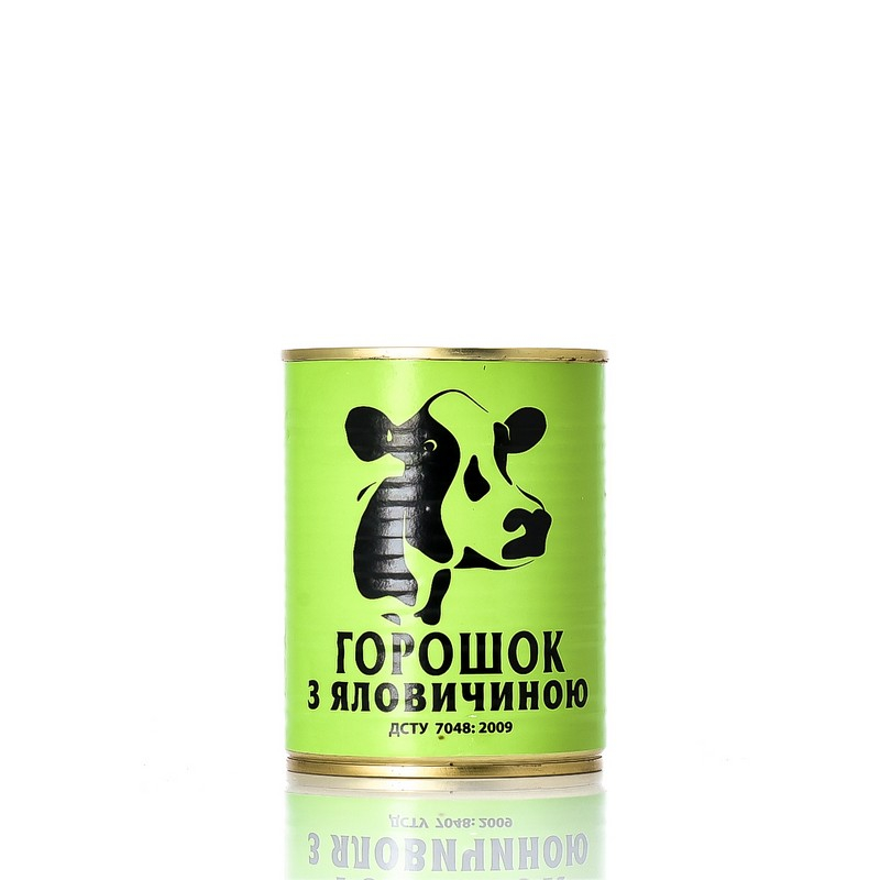Zutaten: Desinewed Schweinefleisch (28%), Schweinefett (22%), grüne Erbsen (25%), getrocknete Zwiebeln, Trinkwasser, Tomatenmark, Steinsalz, gemahlener schwarzer Pfeffer. Gebrauchsanweisung: als separates Gericht. Das Gericht kann 5-10 Minuten lang erhitzt werden. Es ist empfehlenswert, vor Gebrauch zu erhitzen.