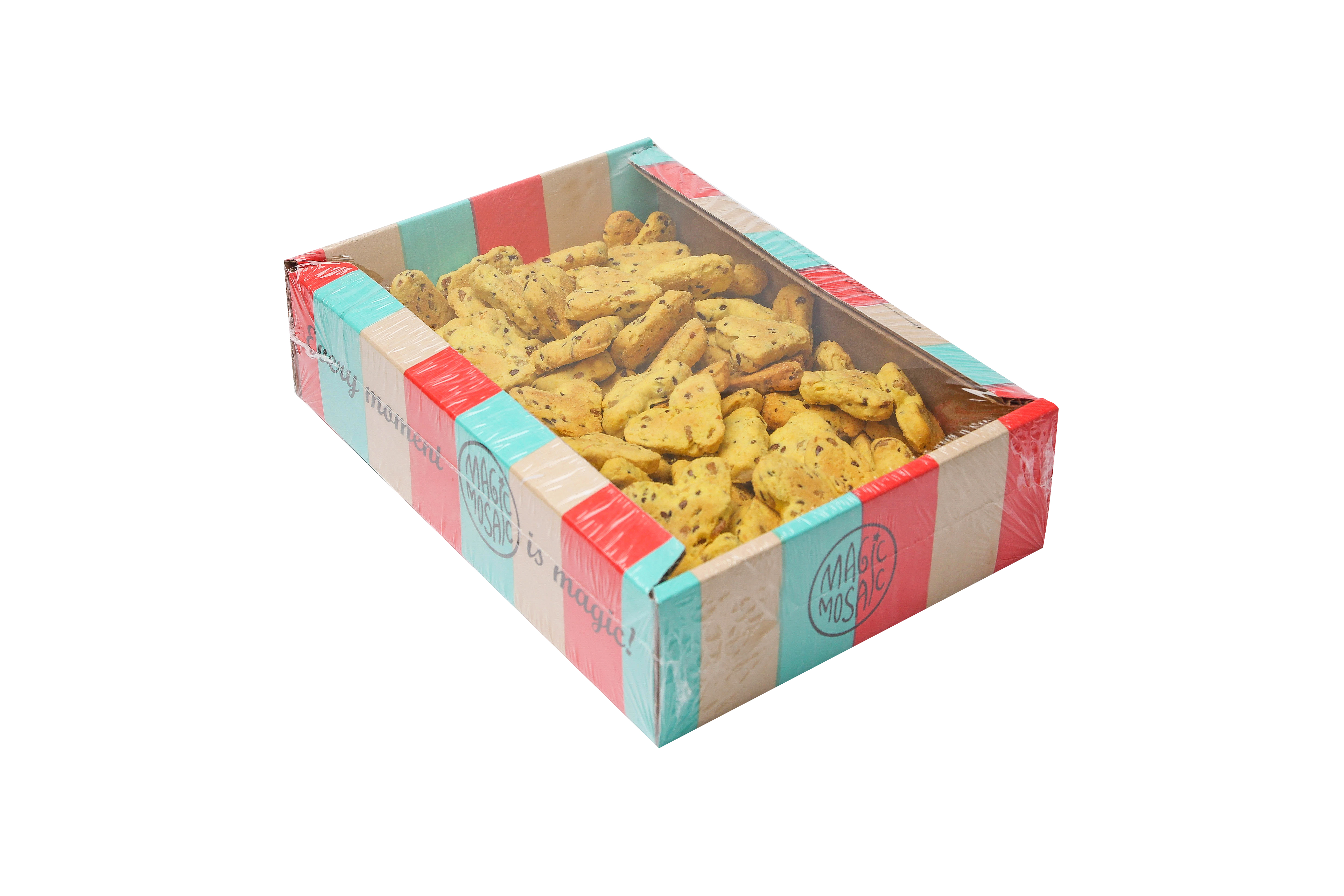 Es hat die Form eines Miniaturherzens, sehr leicht, es gibt viele Stücke in einem Kilogramm. Kekse mit Kurkuma- und Getreidearomen. Natürlich, lecker, gesund, mager! Gewicht im Karton ist 2 kg; 0,5 kg. Stück- und Gewichtsverkauf.
