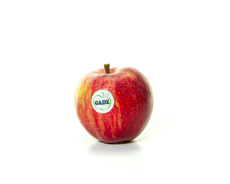 Gala mit voller Farbe und leichten Streifen hat eine dunkelrote Färbung über die gesamte Oberfläche. Die Frucht hat eine mittlere, konische Größe. Er erhält erst relativ spät seine Farbe und erreicht mit dem Farbausbruch den idealen Reife- und Erntezeitpunkt.