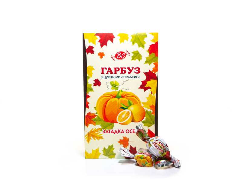 Autumn Mystery candies convey an exquisite combination of candied pumpkin and orange with a delicate confectionery glaze. The recipe for these candies was inspired by our confectioners' traditional autumn associations of vitamin benefits and rich flavor. Probably that is what many of us think of when we think of candied fruit. The unexpected mix of orange and pumpkin tones reeks of mystery and originality. Hence the name! Choose candies "Autumn Mystery" from Volyn Sweets TM - and let them remind you of a pleasant plume of autumn colors.