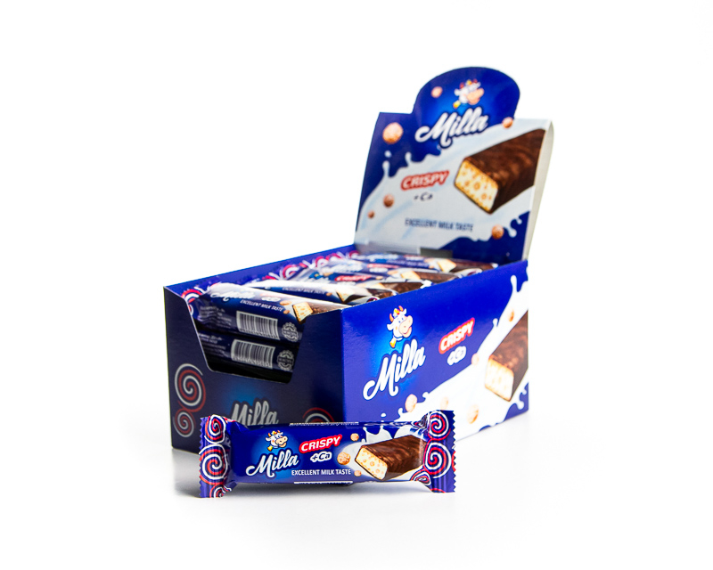 Schokoladen-Waffelriegel mit Reisbällchen, die förmlich schmelzen, gemischt mit einer unglaublichen Milchfüllung. Es enthält auch äußerst nützliches Kalzium.