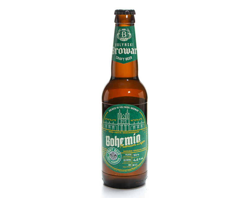 波西米亚(Bohemia)啤酒是沃里尼亚啤酒厂(Volynski Browar)根据捷克特有啤酒配方采用大麦芽和两种啤酒花酿造而成:苦味纯正,香气浓郁。 “波希米亚”是捷克特级拉格啤酒,口感杀口,酒体醇厚,后熟感多 – 一杯入口,尽享捷克老国风情的陶醉感。