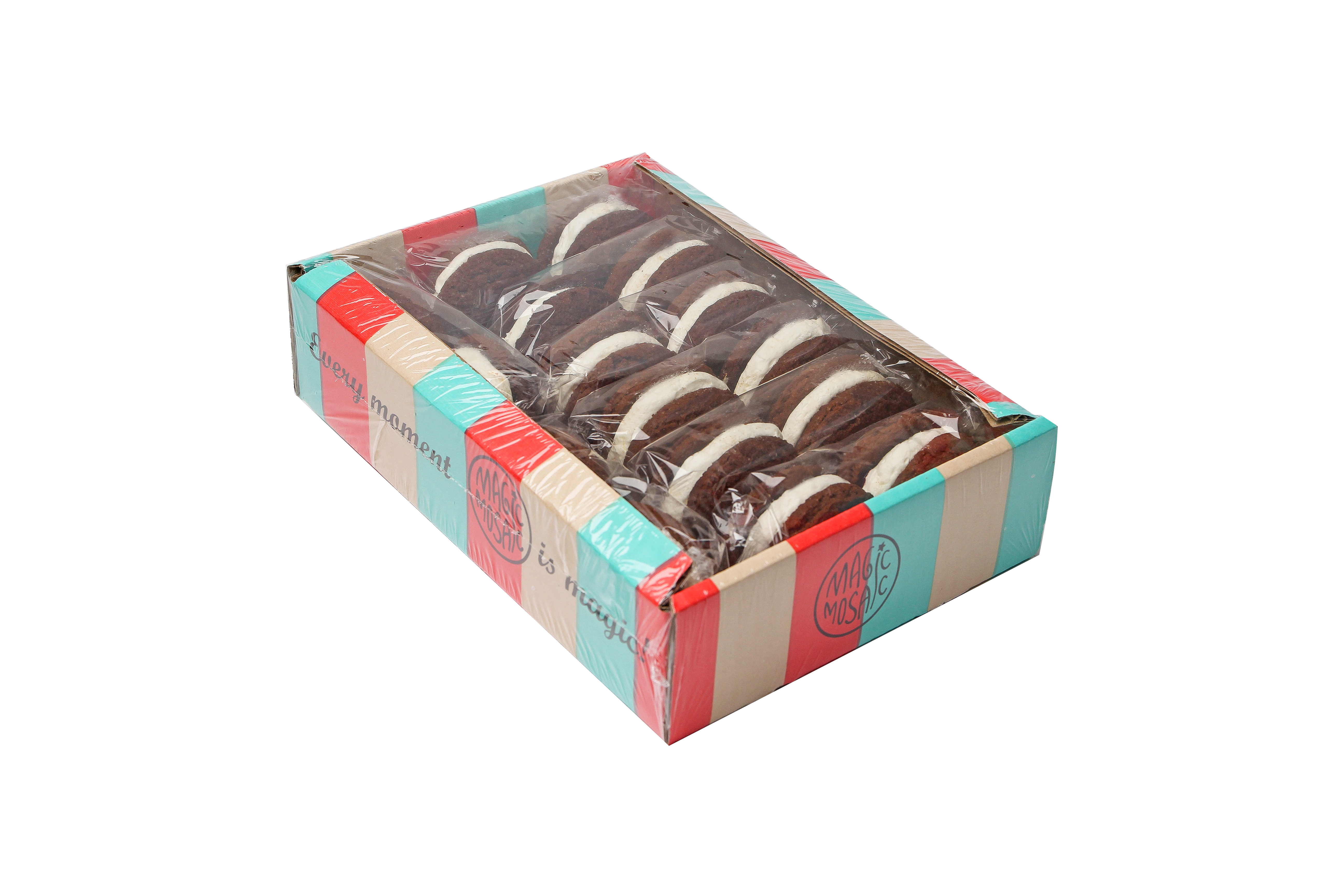 精致的夹心饼干,双层夹心 - 奶油蛋奶酥和樱桃 果酱。 巧克力色的脆饼,表面有裂纹。 基于炼乳 的轻盈舒芙蕾,尝起来像冰淇淋,樱桃果酱为产 品增添了辛辣味。 难忘的风味组合。 透明包装中 的两片饼干。 单箱重量 1.5 千克; 0.42 千克。