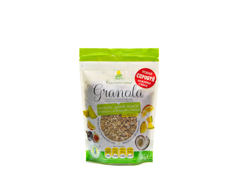 成分:烘焙混合物(88.5%)(燕麦、糖、棕榈油精、玉米球)(玉米粉、燕麦、糖、食盐)、葡萄糖果糖浆、天然蜂蜜、优质小麦粉、大麦提取物、喜马拉雅盐、维生素E)、蜜饯混合物(8.5%)(不同比例:瓜块、菠萝、橙子、葡萄糖果糖浆)、香蕉干片(3.0%)。