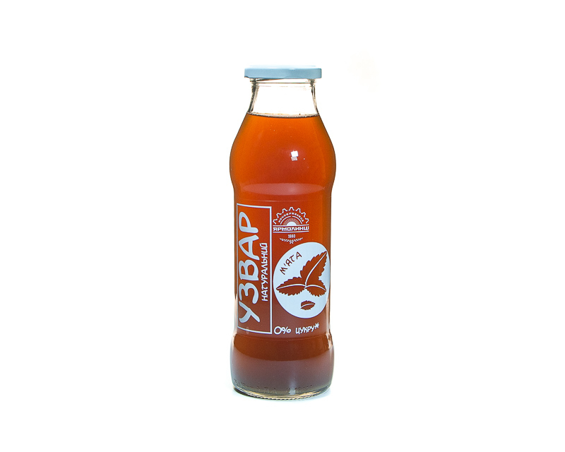 Uzvar "Mint" is a classic uzvar recipe with peppermint herb. The menthol flavor is refreshing in summer. Without added sugar. Product is sterilized. Uzvar is a traditional Ukrainian beverage, that is made from dried fruits, berries and healing Ukrainian herbs.